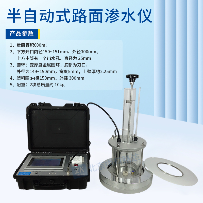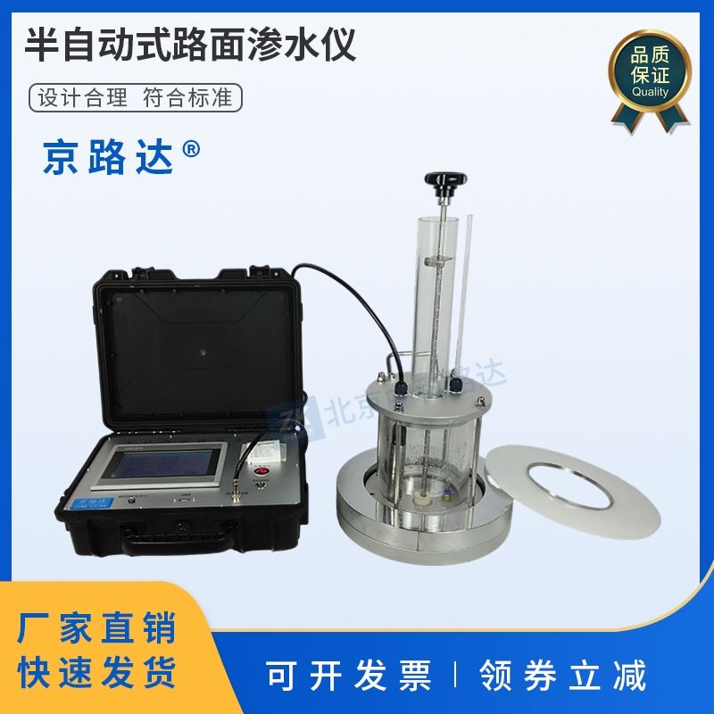 半自動(dòng)式路面滲水儀用于測定瀝青混合料試件的滲水系數(shù),以檢驗(yàn)瀝青混合料的配合比設(shè)計(jì)??捎糜跍y定滲水系數(shù)大于300mL/min的試件(或路面)。具有自動(dòng)測定水位,自動(dòng)計(jì)時(shí),自動(dòng)計(jì)算結(jié)果等功能,內(nèi)置蓄電池。符合JTG 3410-2025《公路工程瀝青及瀝青混合料試驗(yàn)規(guī)程》中 T0730-2025 瀝青混合料滲水試驗(yàn)的標(biāo)準(zhǔn)要求。